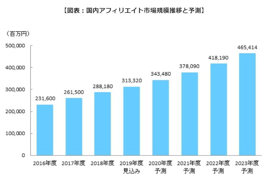 【参考】矢野経済研究所の調査によれば、アフィリエイトの市場規模は今後も伸び続けることが分かります。どこがオワコンなんでしょうね?