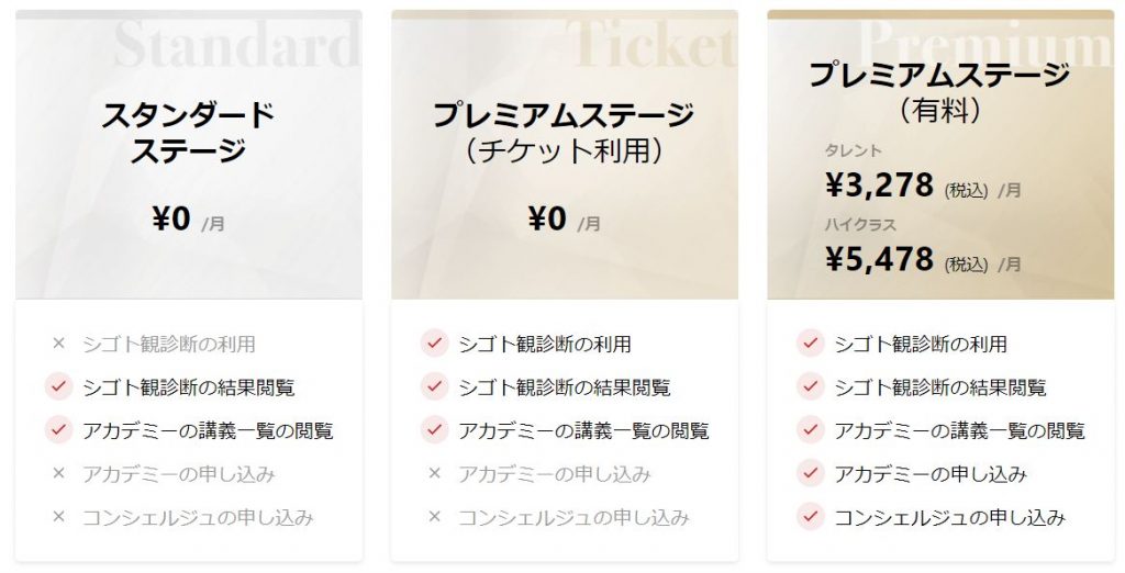 また、先ほど紹介したコンシェルジュも有料の「プレミアムステージ」でなければ受けられません。
