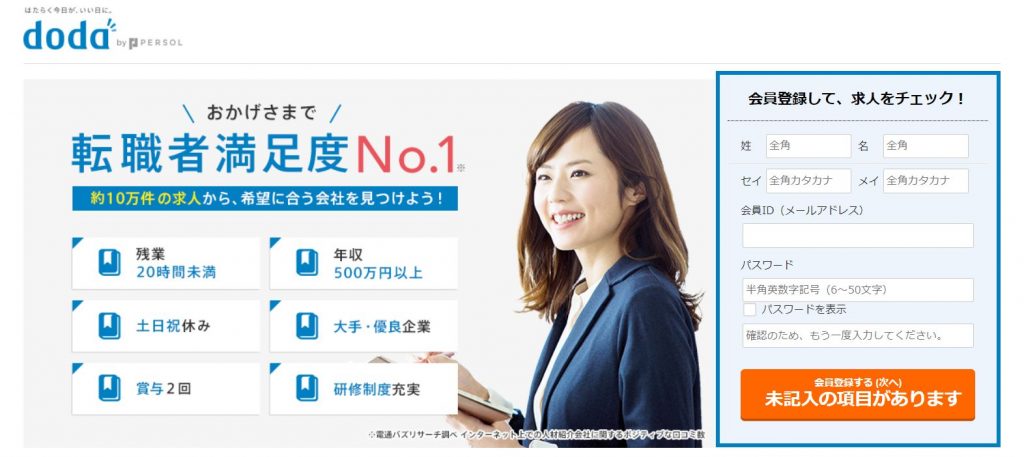 【サイト③】量と質ともに満足度が高い!『doda(デューダ)』