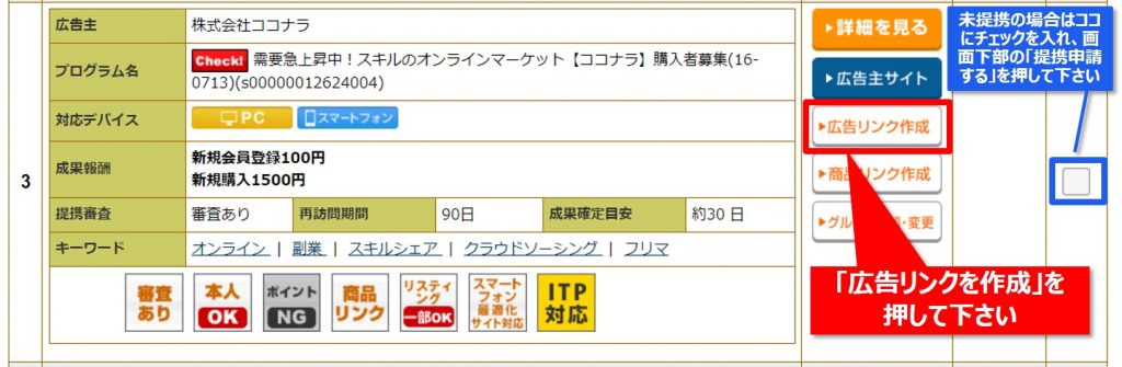 『ココナラの広告を貼りたいけど取り扱いのあるASPはどこ?』
