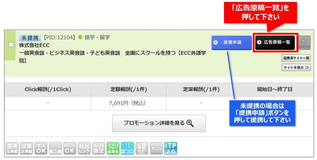 【Step2】表示されたリストの中にお目当てのものを見つけたら「広告原稿一覧」を押して下さい。