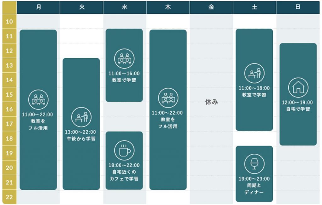 20歳~30歳くらいの方が、仲間と一緒に濃密な学習時間を過ごすのが最適なようですね。値段は高いかもしれませんが、やりぬいた方はみなさん、満足いく結果が得られたことが分かります。