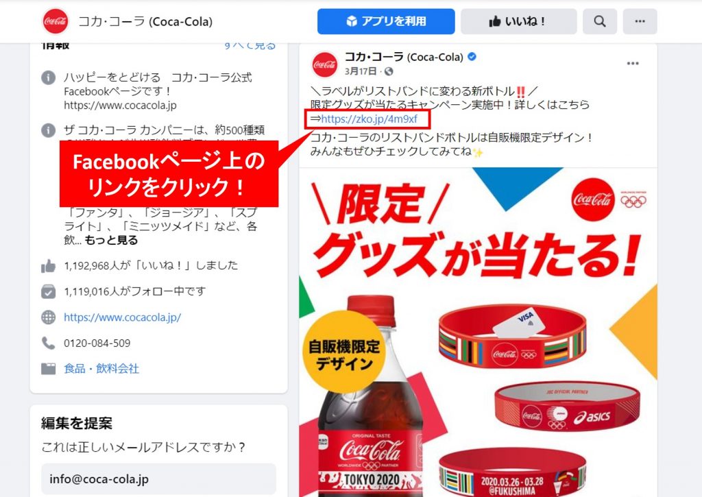 コカ・コーラのFacebookページにアクセスすると、様々な広告が表示されます。