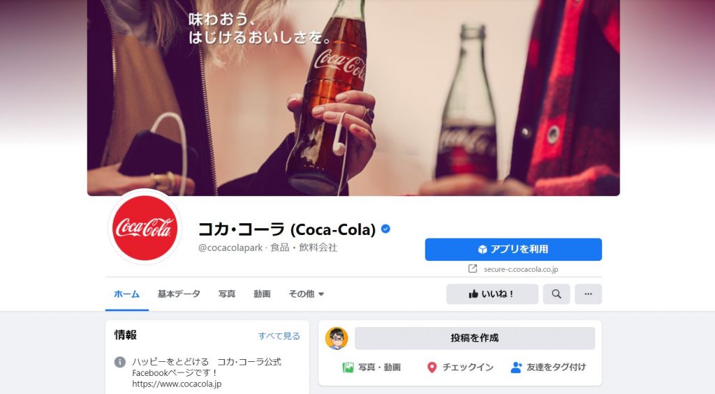 例えば僕の大好きなコカ・コーラの場合はこんなページが出てきますが、この、企業のアピールがたくさん載ったページこそが『Facebookページ』です。