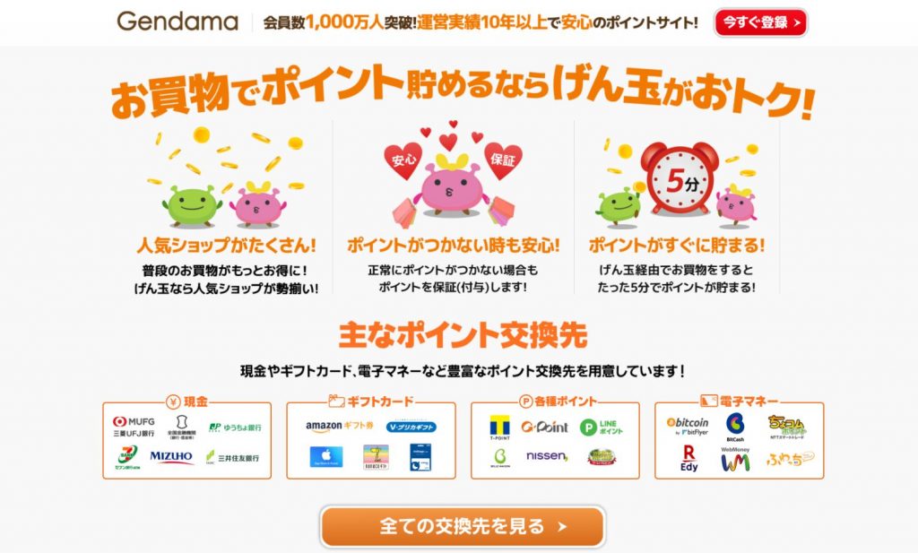 げん玉(Gendama)は国内最大級のポイ活サイト。ポイ活やるなら登録必須のサービスです