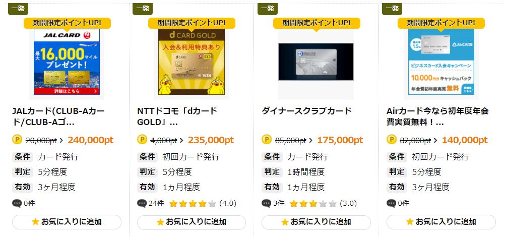 ちなみに、稼ぎ方の王道はやはりクレジットカード案件です。