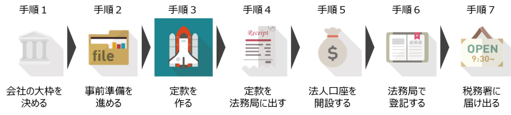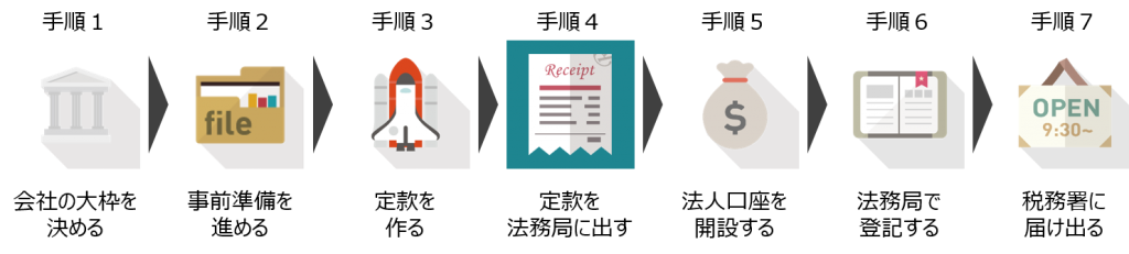 印鑑は申し込んでからできあがるまでの少々時間がかかりますので、会社名が決まったら早めに準備してください。