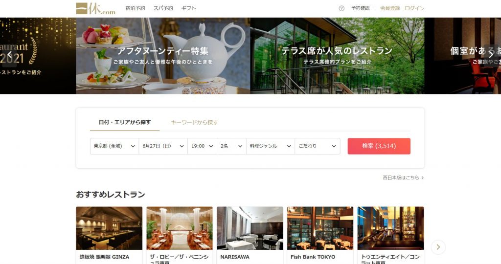 そんな素敵なコンセプトを掲げる『一休.comレストラン』は、高級旅館・高級ホテルのみを取り扱う大手旅行予約サイトで有名な「一休.com」が運営する、レストランの予約サイトです。
