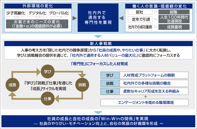 みずほFGは、副業解禁や週休4日制度を進める理由として「社内外で通用する人材バリューの最大化」を掲げています。