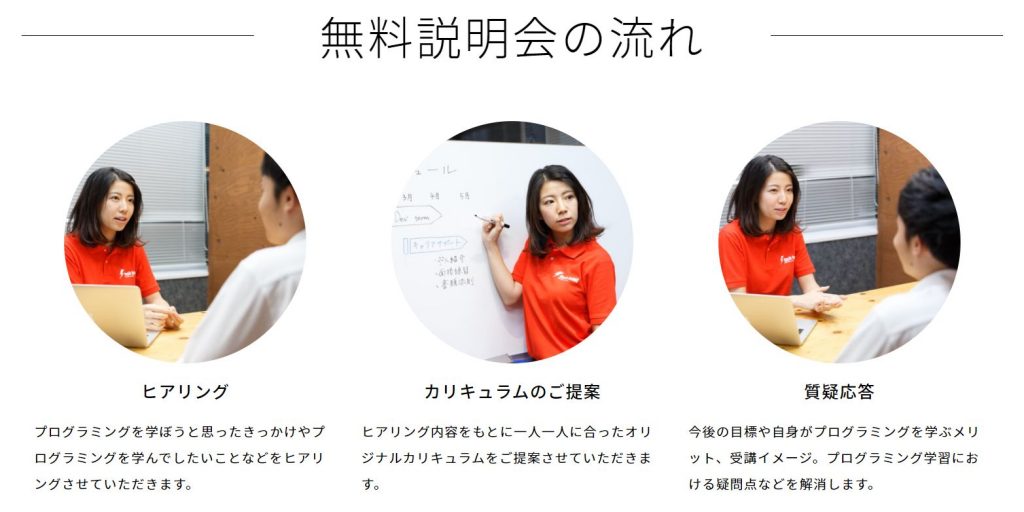無料説明会では、一人一人に合ったオリジナルカリキュラムを提案してくれるので、気になる方は是非説明会に参加してみて下さい。